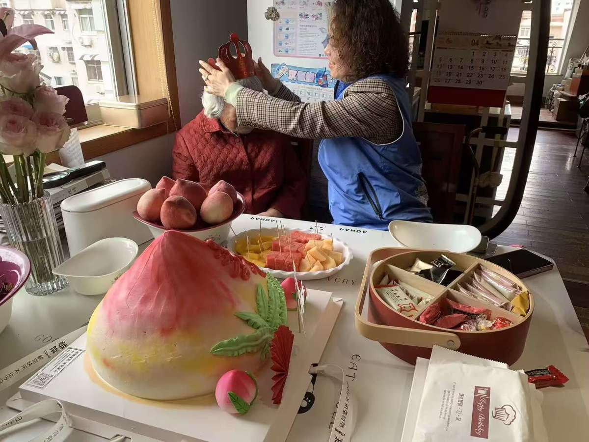 看着桌上寓意吉祥的寿桃蛋糕,听着熟悉的生日歌,严洪芳婆婆脸上洋溢着幸福的笑容,眼里满是感动。志愿者们还细心陪老人唠家常,详细询问她的饮食起居和身体状况,倾听老人讲述过往岁月的故事,小小的房间里充满了欢声笑语。