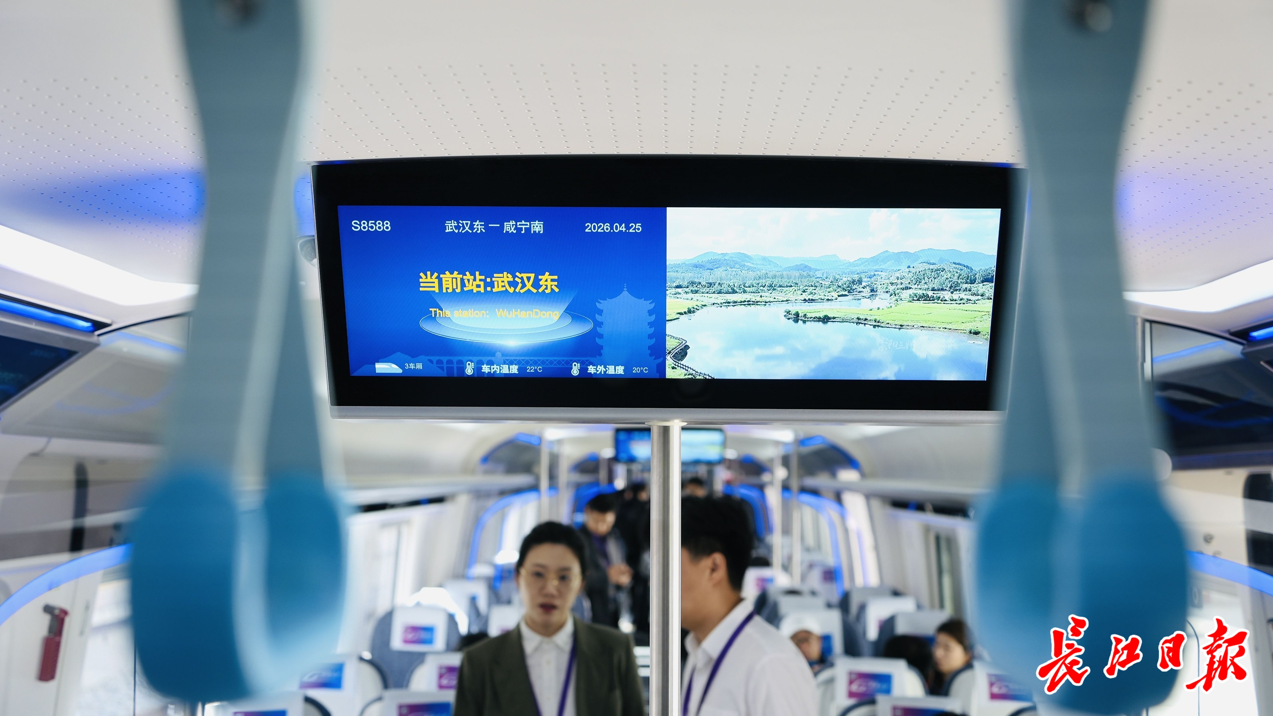 “又平稳又快,空间还大。”带女儿去咸宁春游的贾先生刚上车就忍不住夸赞,一路上他仔细观察车内细节,感受科技带来的便利。当列车途经汤逊湖时,透过车窗,湖景尽收眼底,令父女二人十分沉醉。
