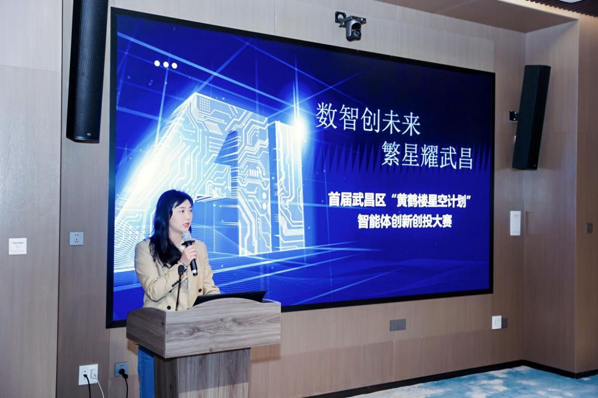 阿里中心武汉产业运营负责人程程,现场推介了武昌区“黄鹤楼星空计划”智能体创新创投大赛。通过重磅赛事和配套创新政策,进一步激发产业活力,助力优质项目在武昌落地生根、发展壮大。