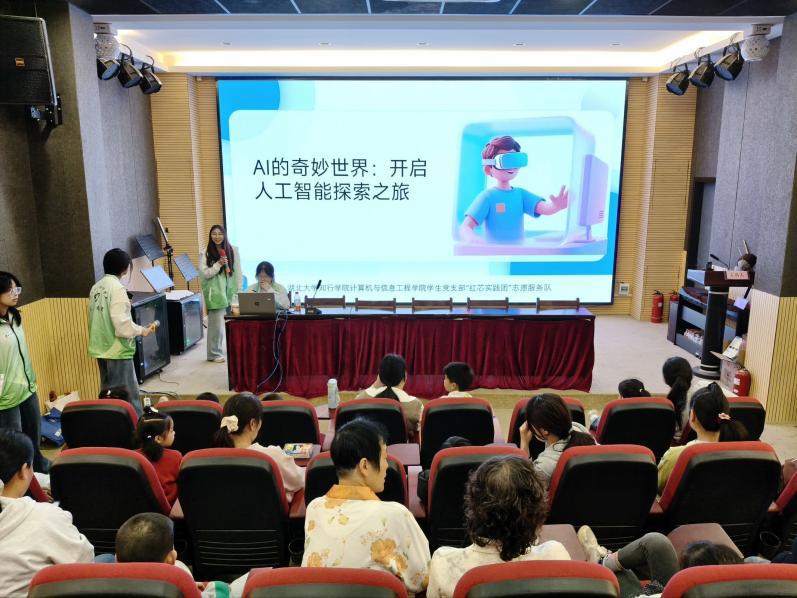4月25日,武汉长江新区天兴花园社区联合湖北大学知行学院计算机与信息工程学院“红芯实践团”,开展“AI的奇妙世界”人工智能启蒙暨“护苗2026”绿书签宣传公益课程,以科技科普与成长守护为主题,有效提升社区少年儿童数字素养、树立科学科技观念,为孩子们筑牢健康成长安全防线。