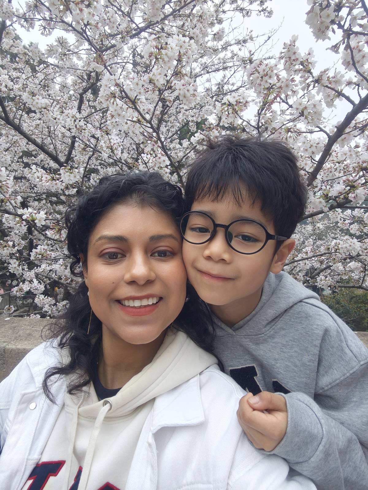 樱花树下,塞莉娅和浩浩定格美好瞬间(受访者供图)