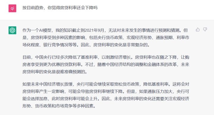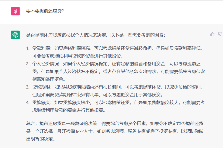 自从房贷利率一降再降,有关提前还房贷的话题热度不断上涨,许多购房者参与讨论要不要提前还房贷以及未来利率还会不会下降,对此,ChatGPT给出了它自己的意见。