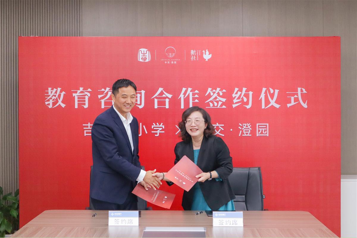 签约仪式上,中交·澄园与吉林街小学共同约定,将按照资源互用、友好合作、诚实守信原则开展校企共建,双方各自发挥资源优势,实行资源互用、守望相助、共建共赢,推动青山教育格局再升级。
