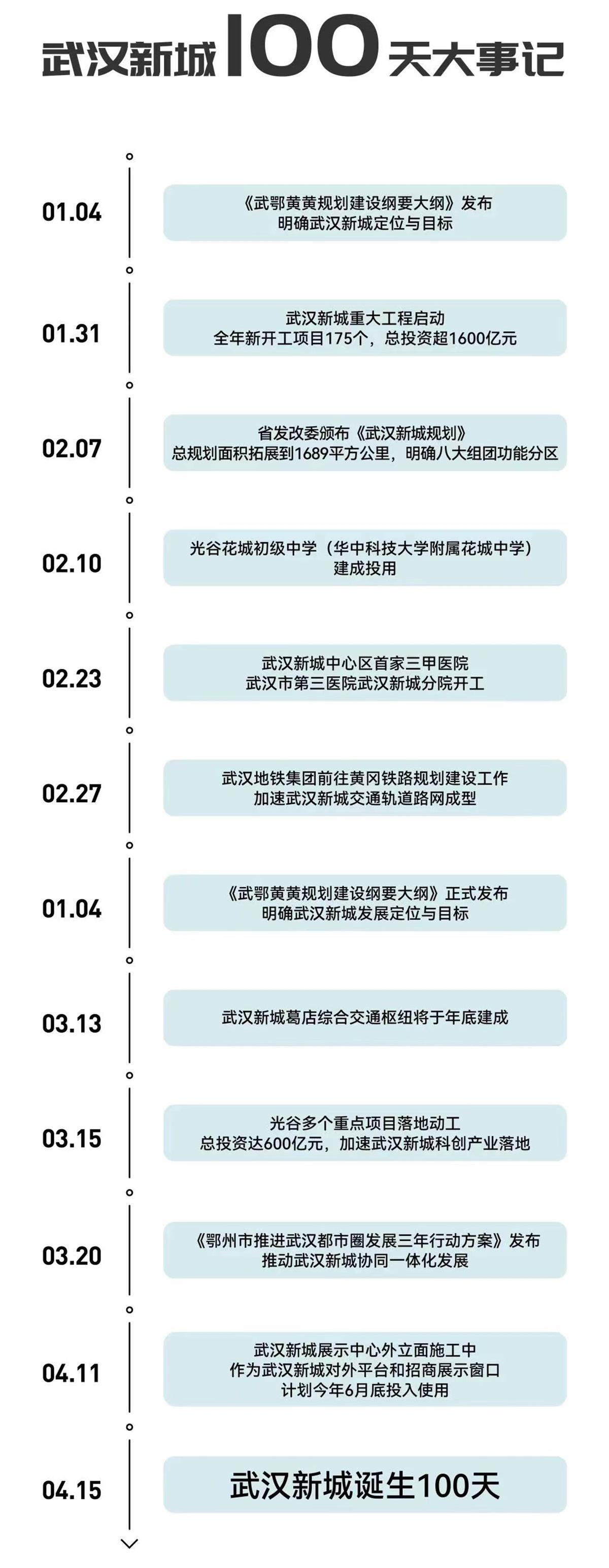 自1月4日《武鄂黄黄规划建设纲要大纲》发布,武汉新城发展定位与目标明确算起,今天恰好是武汉新城诞生的100天。
