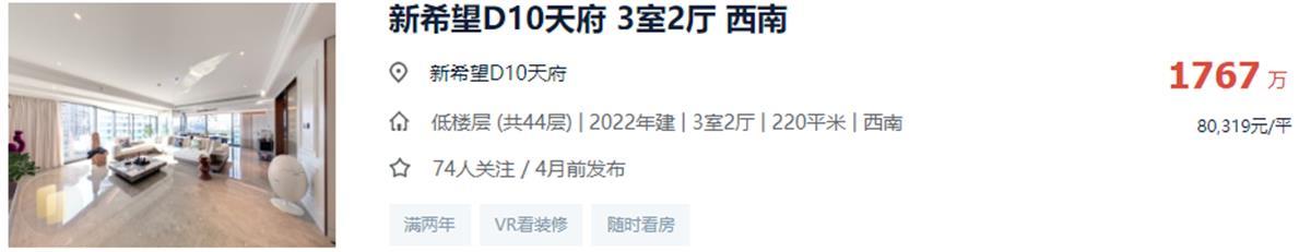 以成都的D10天府住宅为例,交付后不到半年时间,其二手挂牌价最高已达8万/㎡(数据来源:贝壳找房)。