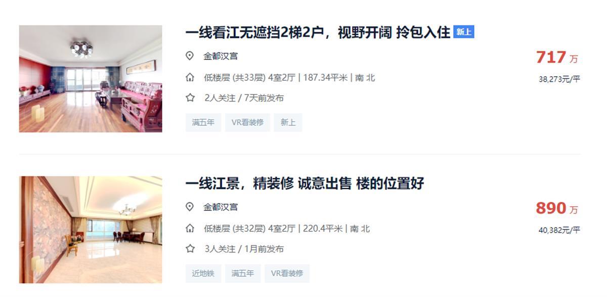 无独有偶,武昌的老牌豪宅,金都汉宫,二手房价格破3.6万+,超周边同期住宅小区60%。