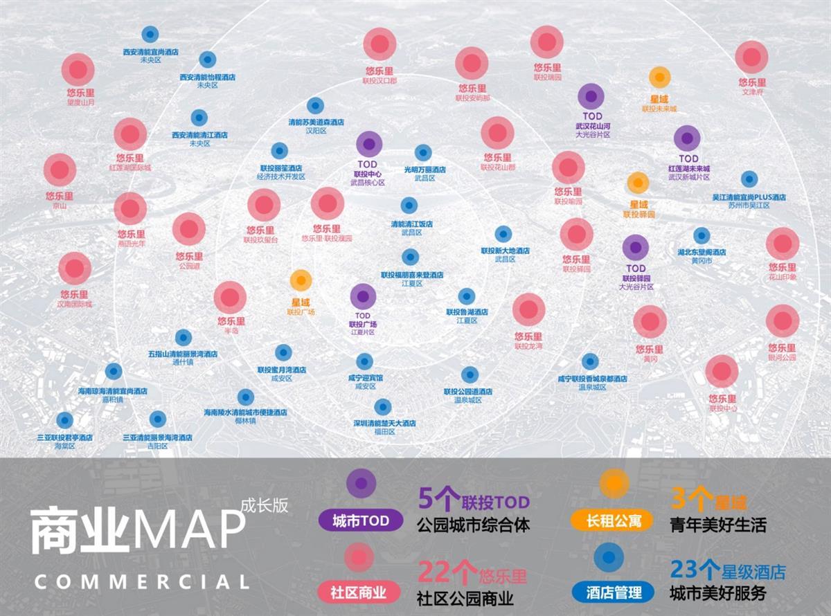 联投置业始终以城市合伙人的高昂姿态,从“重开发”“重销售”向“重运营”“重体验”积极推进,重构多元化价值链,通过业务模式的转变来寻找新的发展点,目前已布局5个城市TOD、3个长租公寓、22个社区商业、23个酒店管理,为美好人居赋予向上生长的力量。