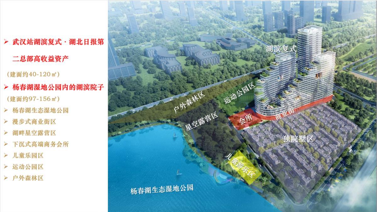 如今的杨春湖,活力奔涌。武汉站东广场与杨春湖之间,湖北日报传媒集团旗下楚天地产正于杨春湖岸打造兼具企业总部、数字文创、文旅度假、酒店民宿于一体的华中文化智创国企园区“湖北日报第二总部”楚天都市春水行云。