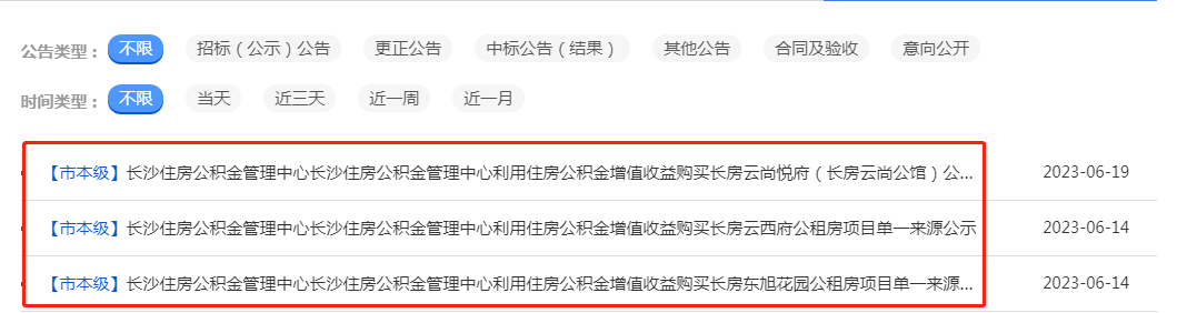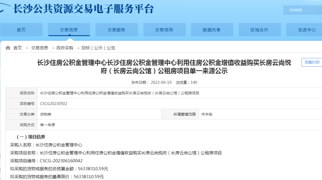 近日,长沙住房公积金管理中心利用住房公积金增值收益购买长房云尚悦府、长房云西府、长房东旭花园公租房单一来源公示。