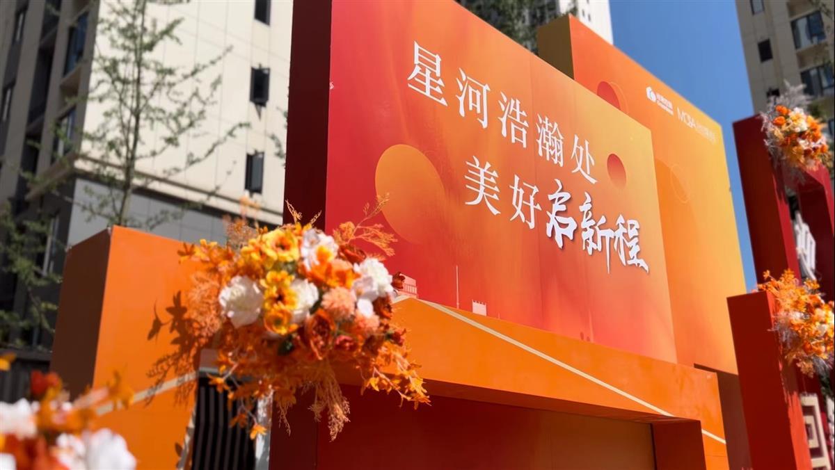 交付现场,暖橙色的“欢迎回家”装点出温馨的氛围,簇拥的鲜花、金色的地毯、树枝上摇曳的欢迎卡片,让归家之旅充满仪式感。签到、验证、缴费、签约、验房等各环节工作人员各司其职,为业主带来高效便捷的收房服务。