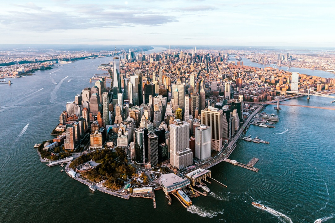 纽约市曼哈顿下城鸟瞰图。过去两年,纽约300多座高层写字楼有大量闲置空间。(https://www.costar.com/)