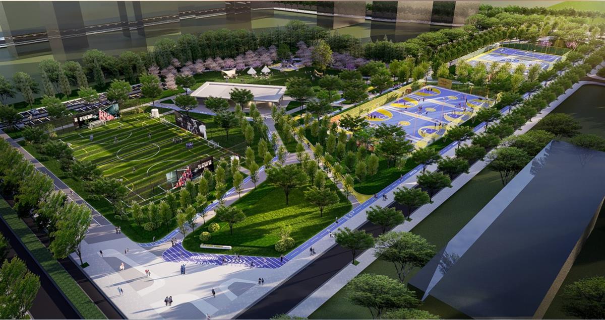 签约仪式启动后,未来中心项目 HI PARK未来运动公园正式揭幕。在未来,HI PARK公园将以打造步行可达的“运动后花园”为导向,以多重功能空间,构建都市绿肺中的健康能量氧吧。