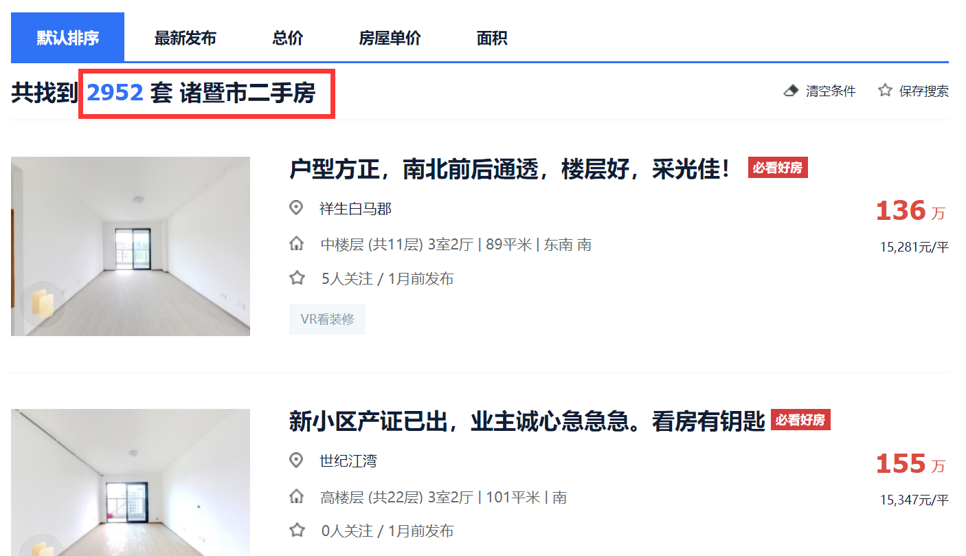 事实上,诸暨市的二手房市场规模并不大。记者从贝壳找房平台了解到,诸暨市目前共有挂牌二手房源2952套。全国房价行情网显示,7月份诸暨市二手房挂牌均价16620元/平方米,近一个月新增挂牌数量1868套。