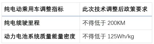 首先是纯电续驶里程,此次技术调整后政策要求,新车纯电续驶里程必须大于等于200KM才可减免。其次是动力电池系统质量能量密度,此次技术调整后政策要求,新车动力电池系统质量能量密度必须大于等于125Wh/kg才可减免。
