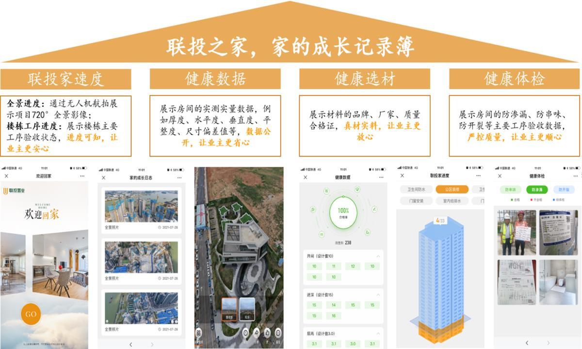 通过联投之家,业主在手机上即可看到自己新家的全部细节,包括进度、选材、施工过程、防渗漏、实测实量数据等信息,让业主感受家的品质,增强对企业的信心。