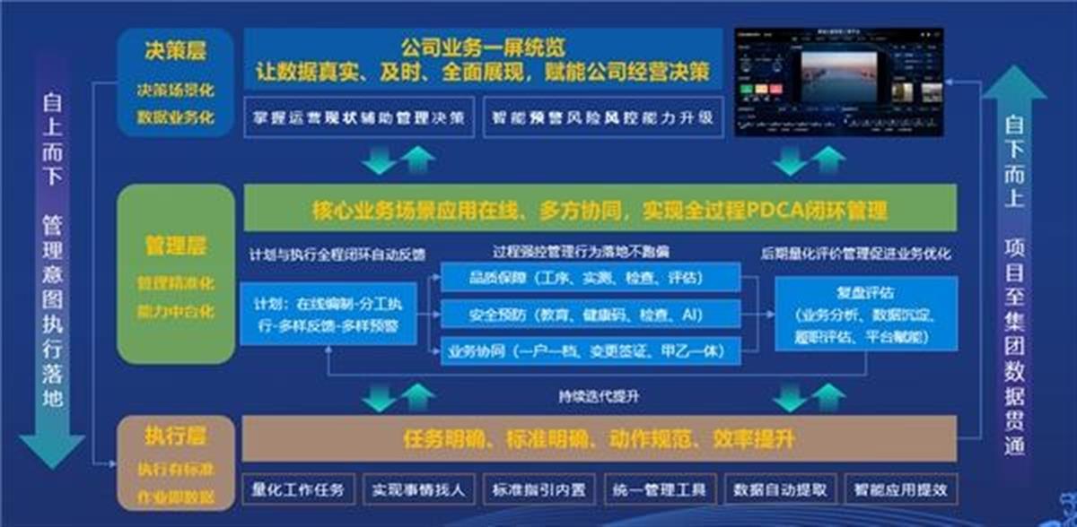 联投置业一方面通过数字化推动业务标准体系建设,建立和完善了8大标准库,63个大类,近500项管理标准,沉淀了企业工程大数据,建立企业“作战指挥中心”,实现智能决策。另一方面通过智慧工程管理系统的应用,实现规范作业提效率,提升质量保交付,保障安全防风险,提升客户满意度。
