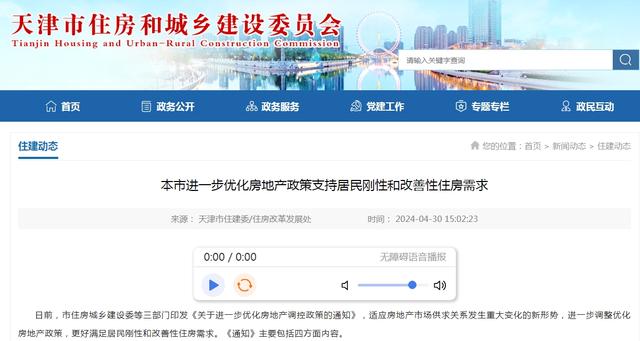 同样在4月30日,天津市住房城乡建设委等三部门印发《关于进一步优化房地产调控政策的通知》。通知明确,北京市、河北省户籍居民和在北京市、河北省就业人员在津购买住房的,享受本市户籍居民购房政策。