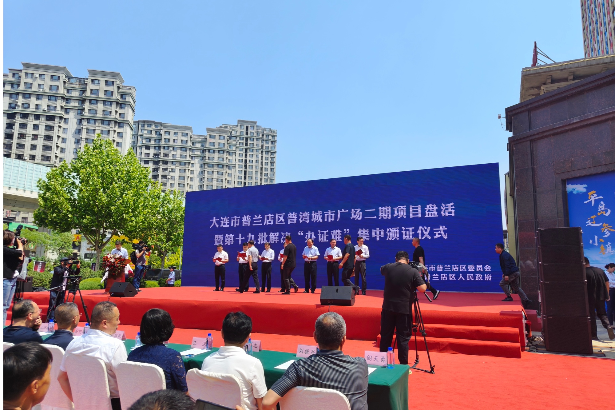 央广网大连6月5日消息(记者于芳菲王松)4日,大连市普兰店区举办普湾城市广场二期项目盘活暨第十九批解决“办证难”集中颁证仪式。这是继盘活东方财富、金色港湾和老店街二期改造等“沉睡”项目后,又一停缓建项目被“唤醒”新生。