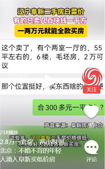 有的人,此时会将阜新与鹤岗做对比,当初鹤岗也曾出现5万元全款购房,年轻人相继涌入购买鹤岗低价房的情况。