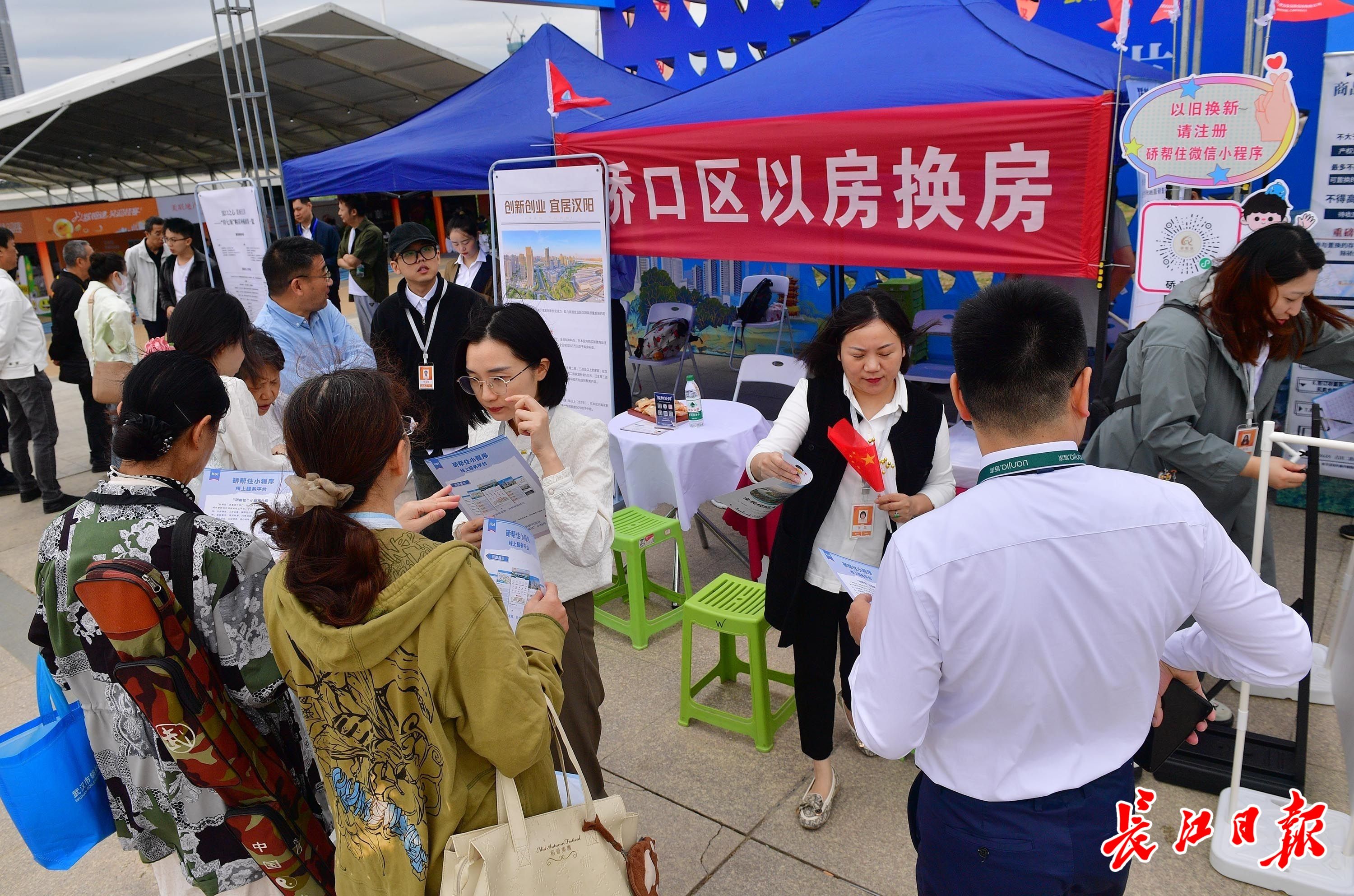 金秋购房节上“以房换房”展位排队登记的人特别多。