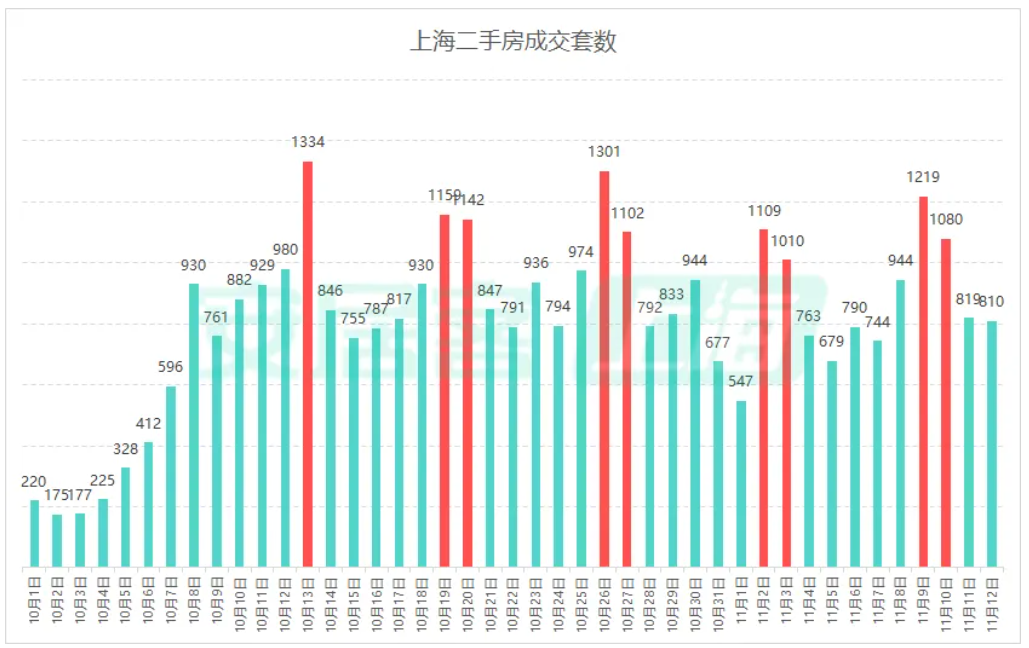 安居客统计显示,在11月的前12天,上海二手房成交量就达10514套;11月前10天,上海二手房共成交8885套,日均成交889套,创年内新高。