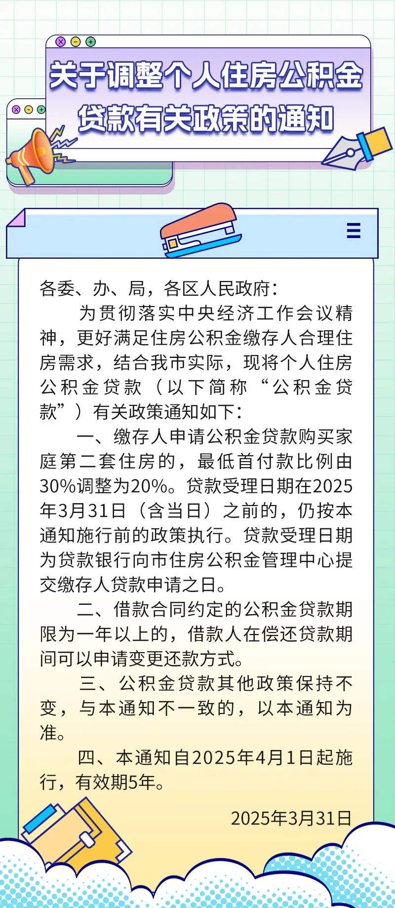 新京报讯 3月31日,天津公积金发布《关于调整个人住房公积金贷款有关政策的通知》,全文如下: