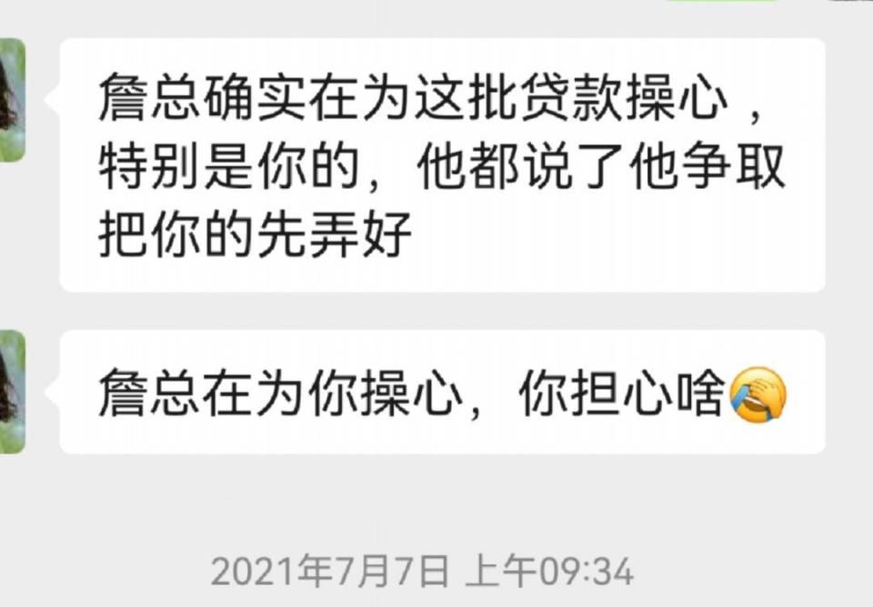 上述时间段期间,周女士与詹总的聊天记录中,詹总也多次表示“已和行长沟通,让尽快放贷”“刚和行长讲过,争取把您的先放出来”。最后,詹总将周女士拉黑。