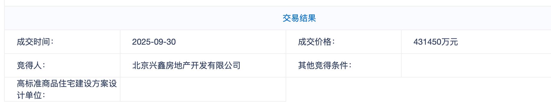 该地块在线上报价阶段就经历了9轮出价,在达到31.28亿元后转入现场竞价环节。经过近三个小时的激烈角逐,最终,北京兴鑫房地产开发有限公司(即中建智地)经过348轮竞价,以43.145亿元摘地,楼面价8.53万元/平方米,溢价率达到39.18%,创下年内新高。