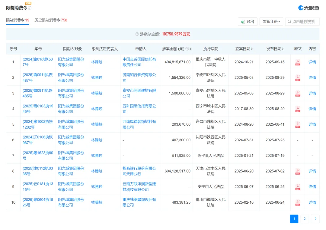 与此同时,据阿里资产拍卖平台,上海润渝置业有限公司向阳光城及其相关公司发起诉讼,要求后者支付2022年1月1日至2023年7月8日的租金、物业费、停车费,合计1.81亿元。目前,法院判决阳光城及其相关公司支付租金及违约金,并归还返还租赁房屋。
