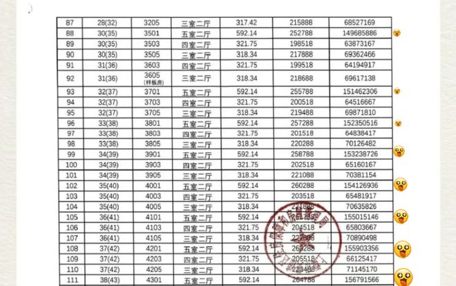 项目一房一价表(部分)