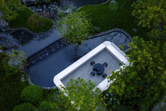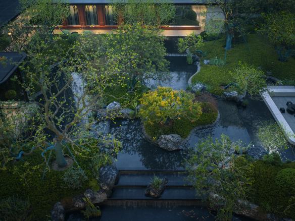 叠瀑水景、下沉吧台实景图