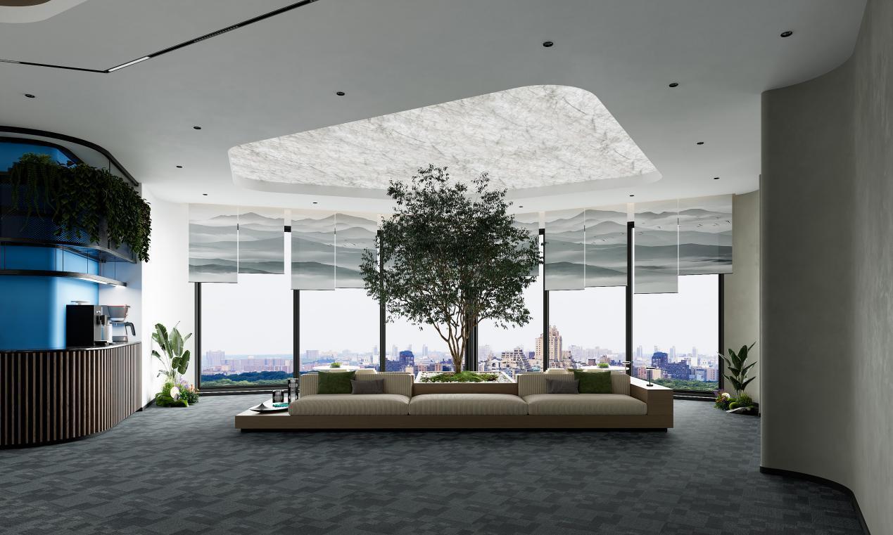 “放空一切,用心感受”——本案设计理念围绕人与自然的和谐共生展开。我们摒弃传统办公空间的冰冷与刻板,通过将室外花园般的自然景观“搬”入室内,创造一个既能激发员工创造力,又能有效缓解工作压力的“都市绿洲”。绿植不再是简单的装饰,而是空间的灵魂与呼吸的源泉,它贯穿于接待区、办公区、休闲区乃至走廊过道,构建起一个立体化的绿色生态系统。