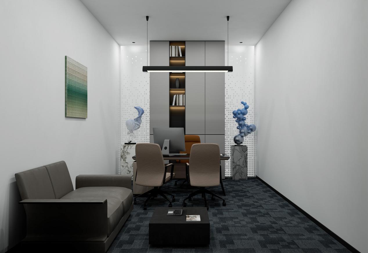 办公室设计以“以人为本、高效协同、现代简约”为核心理念,旨在打造一个兼具功能性与舒适性的办公环境。空间布局采用开放式与封闭式相结合的方式,开放式办公区促进团队协作与信息流通,独立办公室则保障管理层的私密性与专注度。色彩上以浅灰、米白为主色调,搭配原木色点缀,营造宁静、专业的氛围,同时通过局部亮色挂画与绿植增添活力。