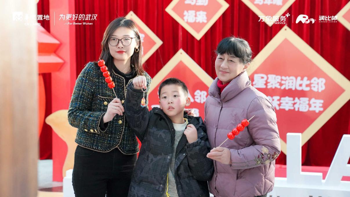 业主们携家人漫步其间,孩子们举着晶莹的糖葫芦雀跃,业主们在剪纸摊位前与民俗老师共同完成作品——这场“家门口”的市集,让深植于城市肌理的“过早”传统与“过晚”温情,在邻里的分享与互动中重新鲜活起来。现场准备的一众润比邻IP周边等文创产品一亮相就吸引了业主们的目光,润比邻冰箱贴更是被领取一空,成为每个人可以带回家的“温暖年味”。