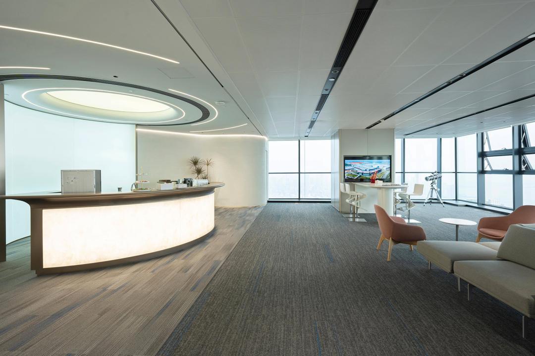 在办公配套方面,星城中心同样不遗余力。43层城市会客厅配备宇树机器人、全息3D裸眼屏、VR飞行器、沉浸式环幕区、激光投影剧场、元宇宙VR体验等前沿科技设备,成为企业展示、会议、社交、路演的多功能平台。阶梯会议室、招商路演厅、共享交流区等多元空间,构建起“办公即生态”的活力场域。