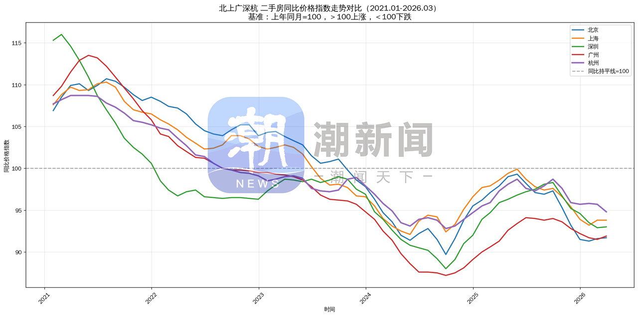 国家统计局3月数据显示,北上广深四个一线城市二手房价环比全面上涨,涨幅从0.2%至0.6%不等。相比之下,3月杭州二手房价尚未止跌,环比下跌0.1%。