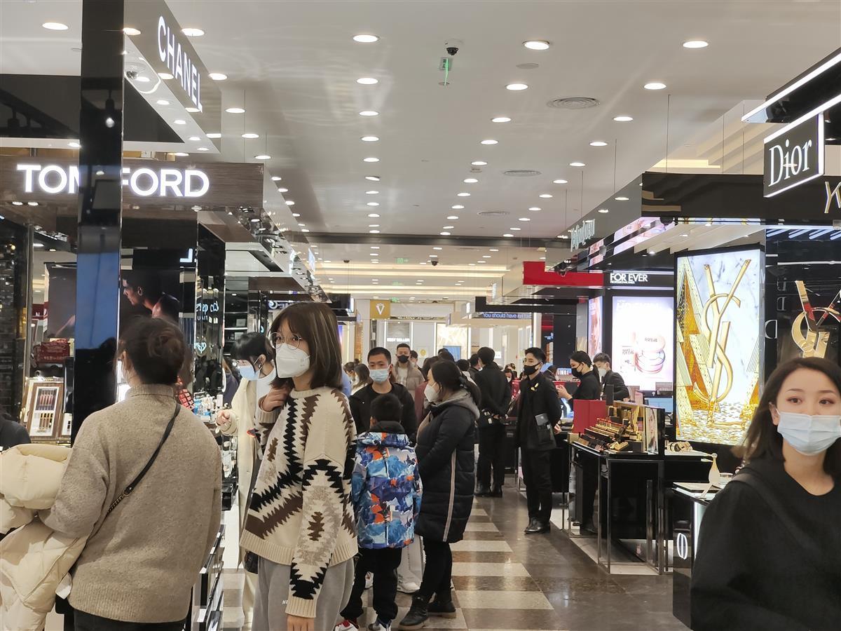 据悉,Prada、博柏利等十余个国际名品元旦单日全国销售第一,Apple store苹果直营店从早上开业起就迎来大量顾客,餐饮品牌普遍排队时间超过40分钟。兰蔻、赫莲娜、YSL、阿玛尼等十大高端化妆品品牌全线产品8.8折,还享满额赠套盒,吸引大批女性消费者排队体验、买单,“她”经济效应显著。不少带着孩子的市民则去了鸟局、儿童空间渡过美好时光。
