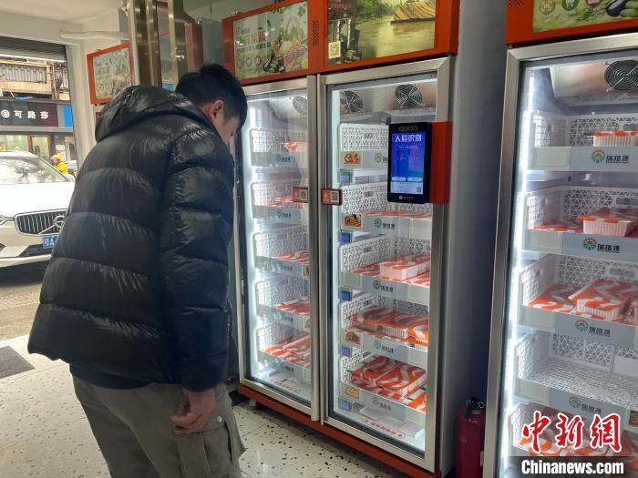 图为顾客在“机器人餐厅”的储存柜选取菜式武一力摄
