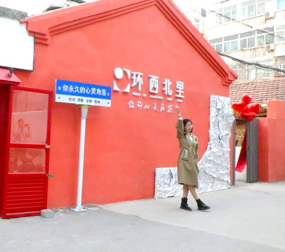 穿过卫校北街,一面粉红色的墙扑面而来,“环西北里”悬挂在中间,旁边立着“你永远的心灵角落”字样的路牌,这面墙也成为了环西北里最“红”的打卡地之一。从墙的右侧推门进入,便进入了12名合伙人共同打造的“环西北里”。