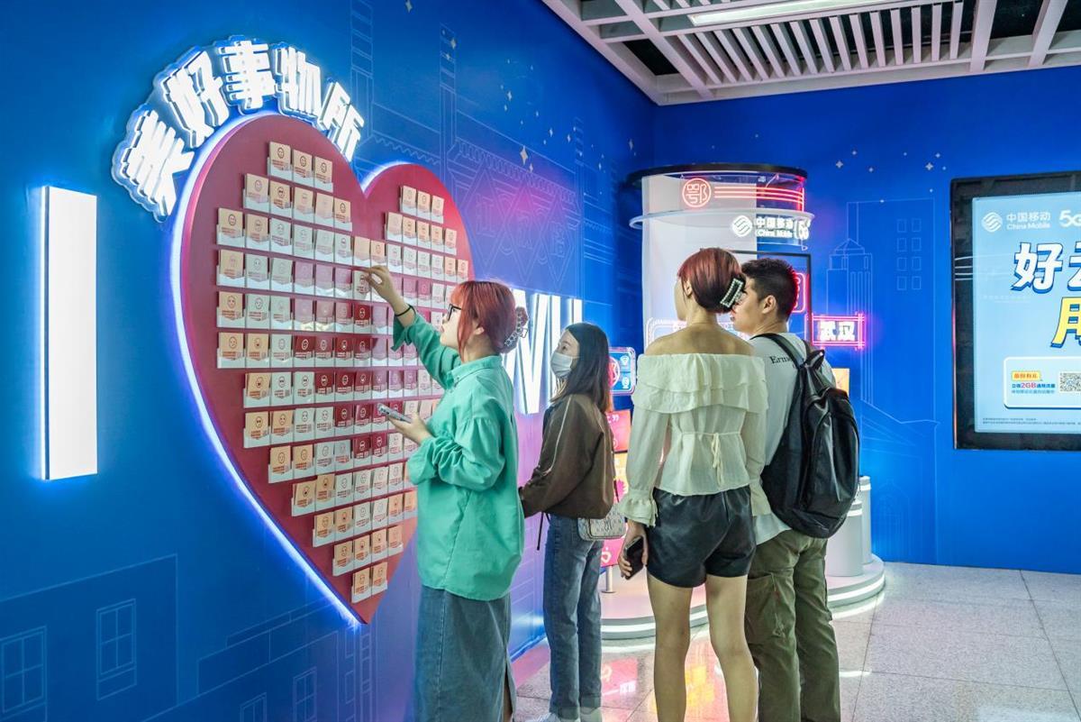 作为武汉地铁首个“数字消费市集”的品牌方,湖北移动通过各种智潮生活场景搭建,帮助消费者直观感受移动5G为我们生活带来的便捷和改变,引来了不少市民乘客们围观驻足。在活动现场,“美好事物所”心形互动区前聚集了超高人气,乘客可以随机领取符合自己心情或生活态度的情绪小卡片,还可以扫码领取对应的业务优惠。“很新奇、很有意思,活动力度蛮大,值得参与”一位路过的乘客参与互动后感慨道。