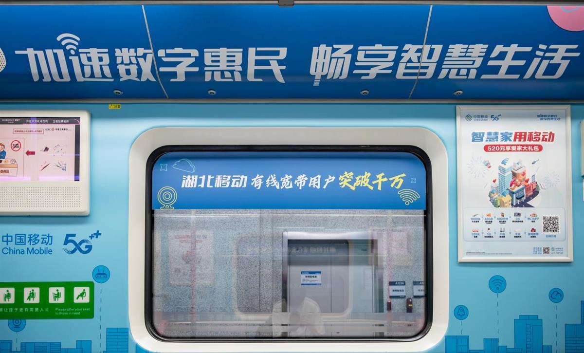 此外,湖北移动数字专列也在武汉地铁2号线、4号线正式发出,承载着湖北移动有线宽带用户破千万的喜讯,满载着丰富的用户权益,让“中国移动5G:千万智造,千兆升级”直达消费者的身边、眼前。