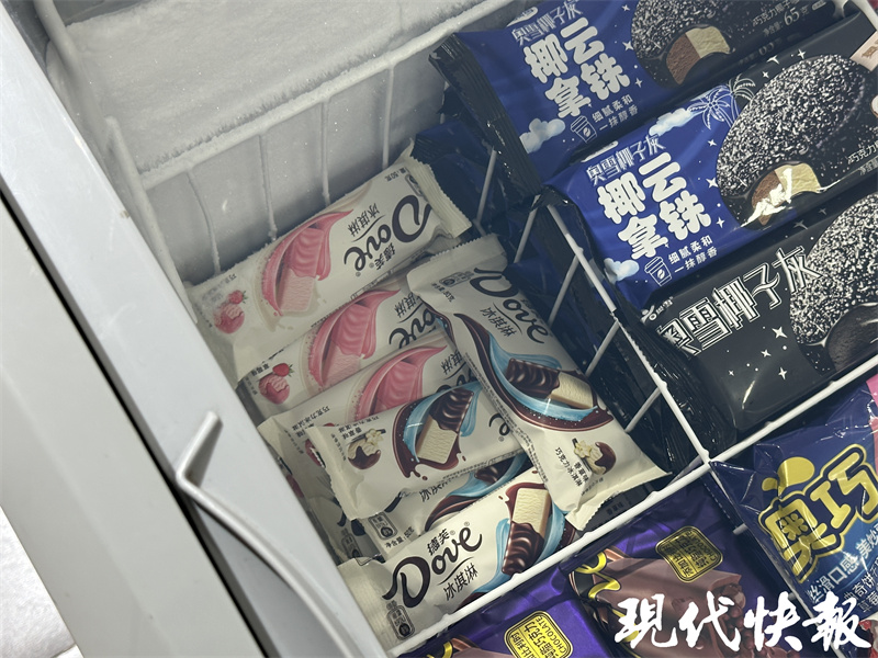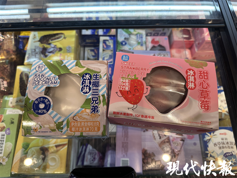 在南京新街口某商超内,记者发现,与一个月前相比,冰柜里的雪糕已经全面上新。泡芙冰淇淋、甜心草莓、生椰三兄弟……柜台中有着这么一批形式新颖、包装精致的新型雪糕。