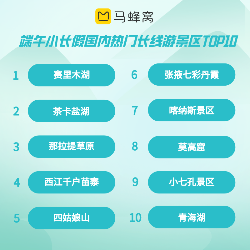 休息三天的人选择了短途周边游,“请三休八”凑长假的年轻人也规划好了玩法。马蜂窝数据显示,不少年轻人选择在端午踏上长途旅行,自驾是他们热衷的出游方式,热度环比上升126%。水草丰茂、鲜花繁盛且适合长途自驾的新疆毫无意外地成为了他们的首选目的地,赛里木湖、那拉提草原、喀纳斯景区三地上榜端午热门长线游景区前十。