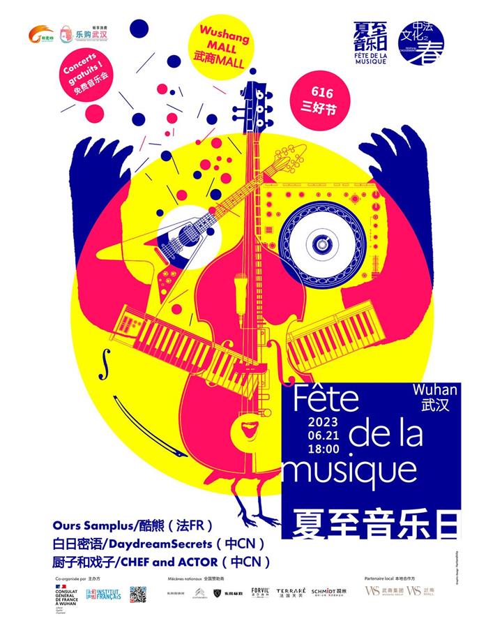 本场夏至音乐日的演出由法国驻武汉总领事馆文化处、武商集团共同呈现。再次感谢众多媒体伙伴以及法国驻华大使馆的全国合作伙伴:东风雪铁龙、东风标致、法国天芮和司米的鼎力支持。