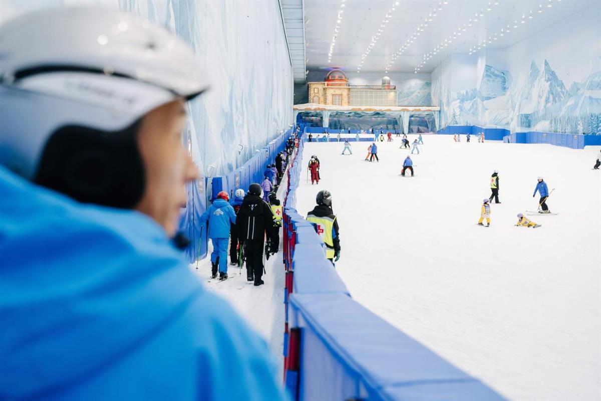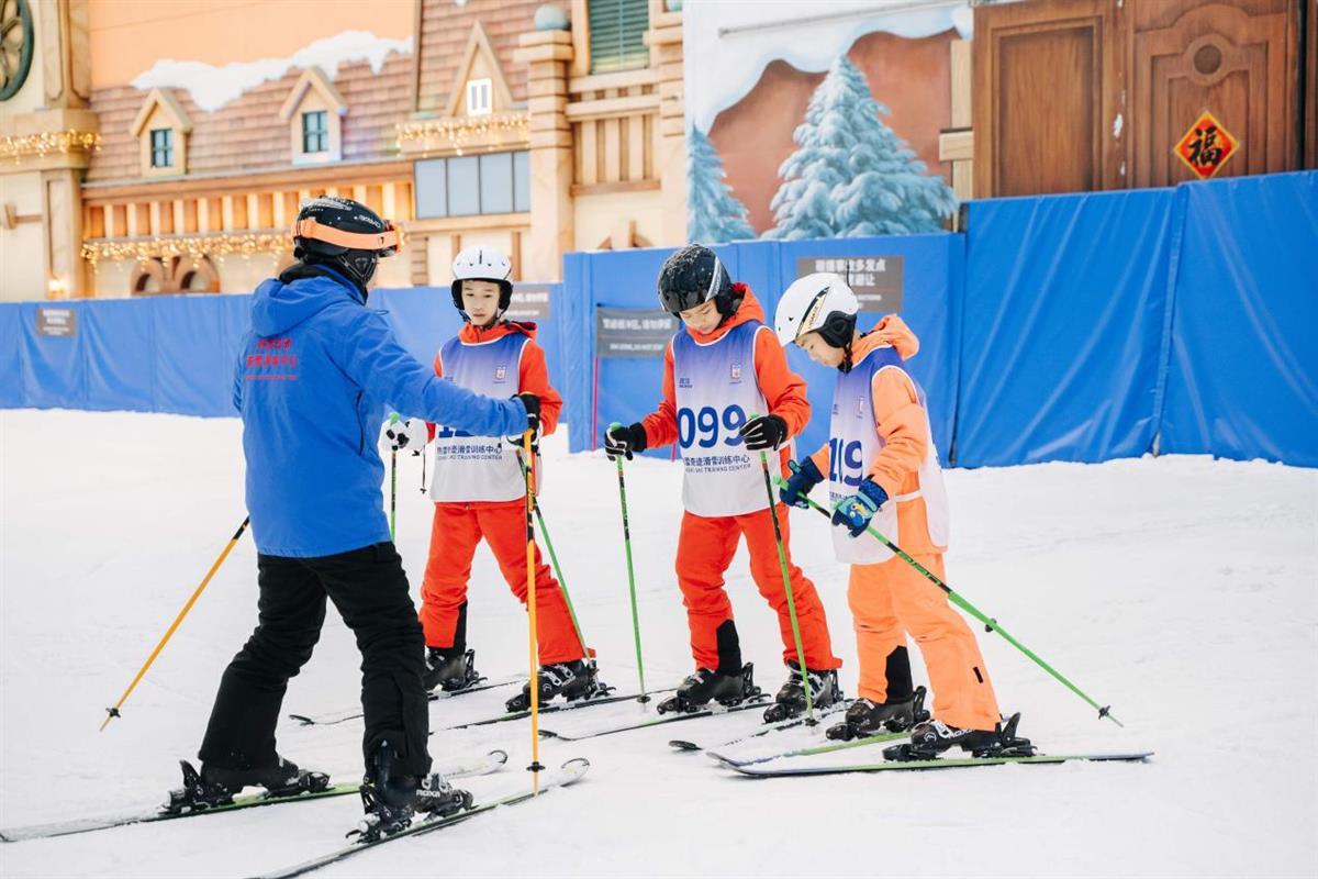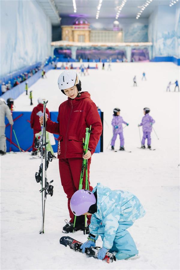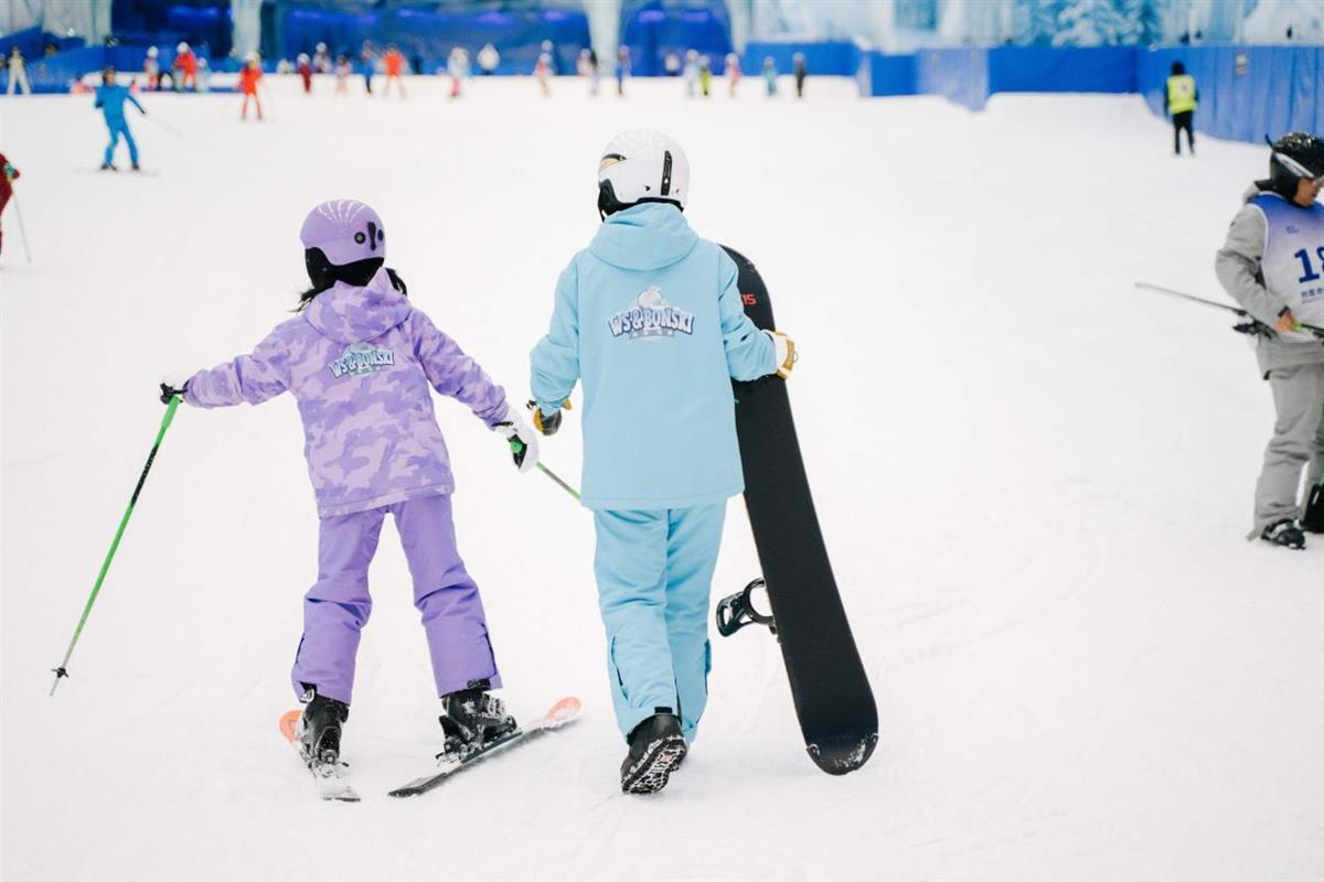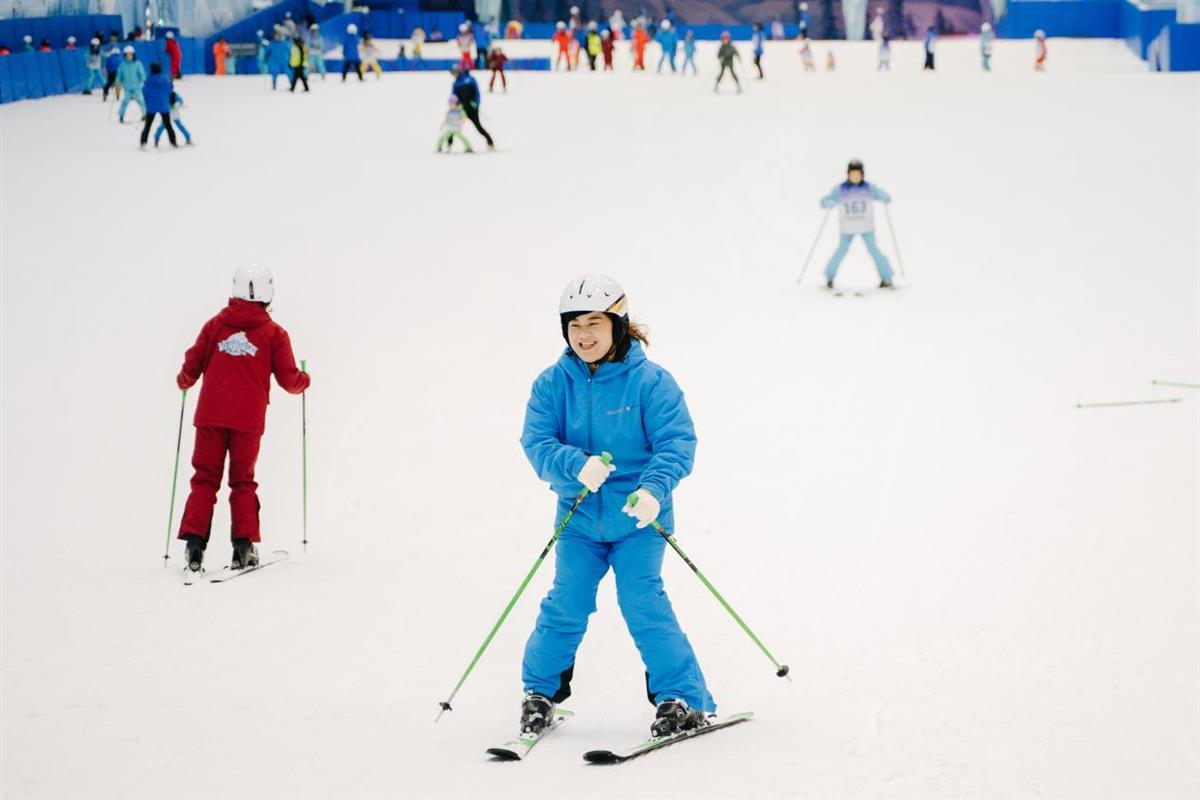 从雪道上方畅意滑下,在冰雪世界堆雪人、打雪仗,随着音乐在贝加尔湖狼山景致的冰场开心滑冰,不经常玩雪的武汉孩子们大呼过瘾。在WS热雪奇迹教练的带领下,学生家庭集体热身、学习滑雪的基本技巧。