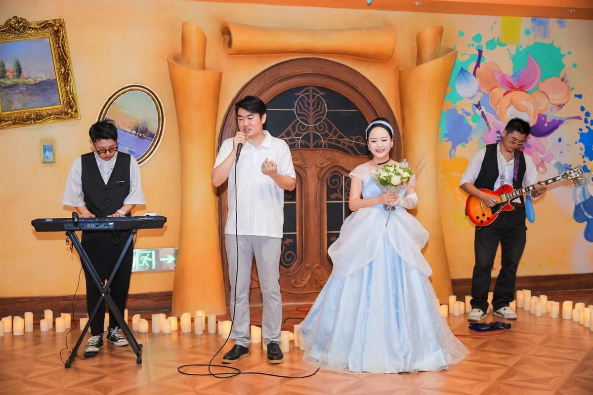 早在几日前,陈先生便联系了WS梦乐园的工作人员,计划一场神秘求婚,在亲友们的见证下,给付女士一个惊喜!当晚6点,WS梦乐园——不可思议的城堡开启七夕特别活动:浪漫烛光派对。陈先生早已准备在此给付女士求婚,乐队演奏了几首幸福浪漫的歌曲后,陈先生惊喜出现,给付女士带来一首属于他们的歌曲,“我想就这样牵着你的手不放开”充满爱的歌词,也表达出他的满满爱意!