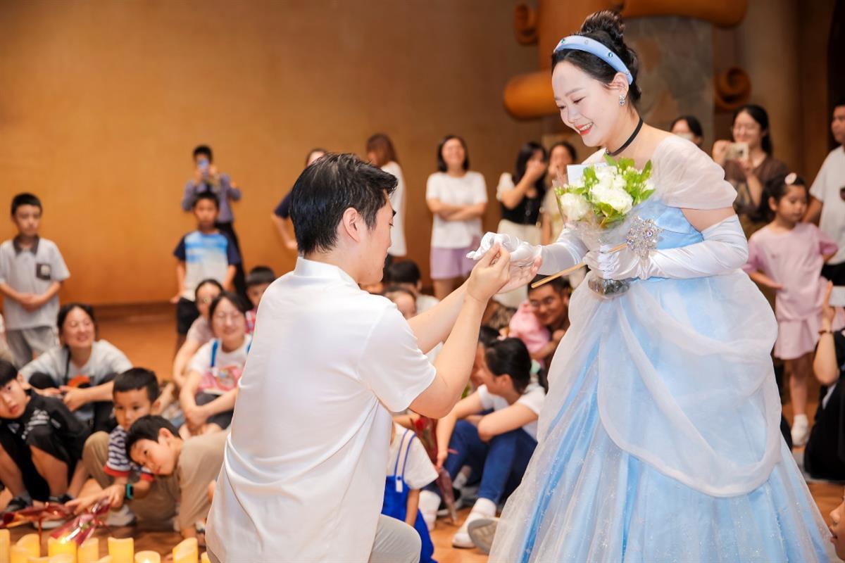 随后,付女士被邀请到城堡,陈先生单膝跪地,对着付小姐深情告白,只见女主角眼眶含泪,点了点头。陈先生将代表承诺的戒指戴在准新娘付女士的手上。求婚结束后,这对新人坐上WS梦乐园的名画彩车,开启幸福的夏日缤纷奇幻大巡游,将象征爱情的玫瑰花派发给游客,传递幸福和喜悦,并祝福现场的游客们七夕快乐!游客表示:在WS梦乐园感受到极致的浪漫感,也祝福这对新人,希望自己也能拥有甜甜的爱情。