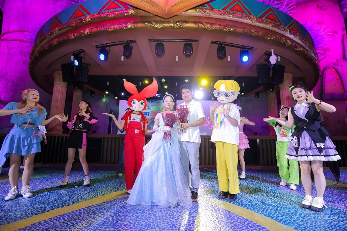 在主持人的鼓动下,他略显害羞地在亲友及游客面前讲述了两人之间相遇、相知的故事,没有惊天动地,有的只是陪伴左右、心意相通、彼此理解,互相包容。现场观众都沉浸在此刻的美好之中,今天的WS梦乐园,浪漫都属于这对新人。