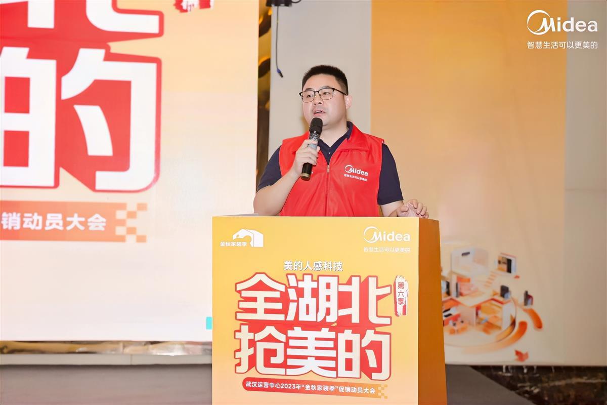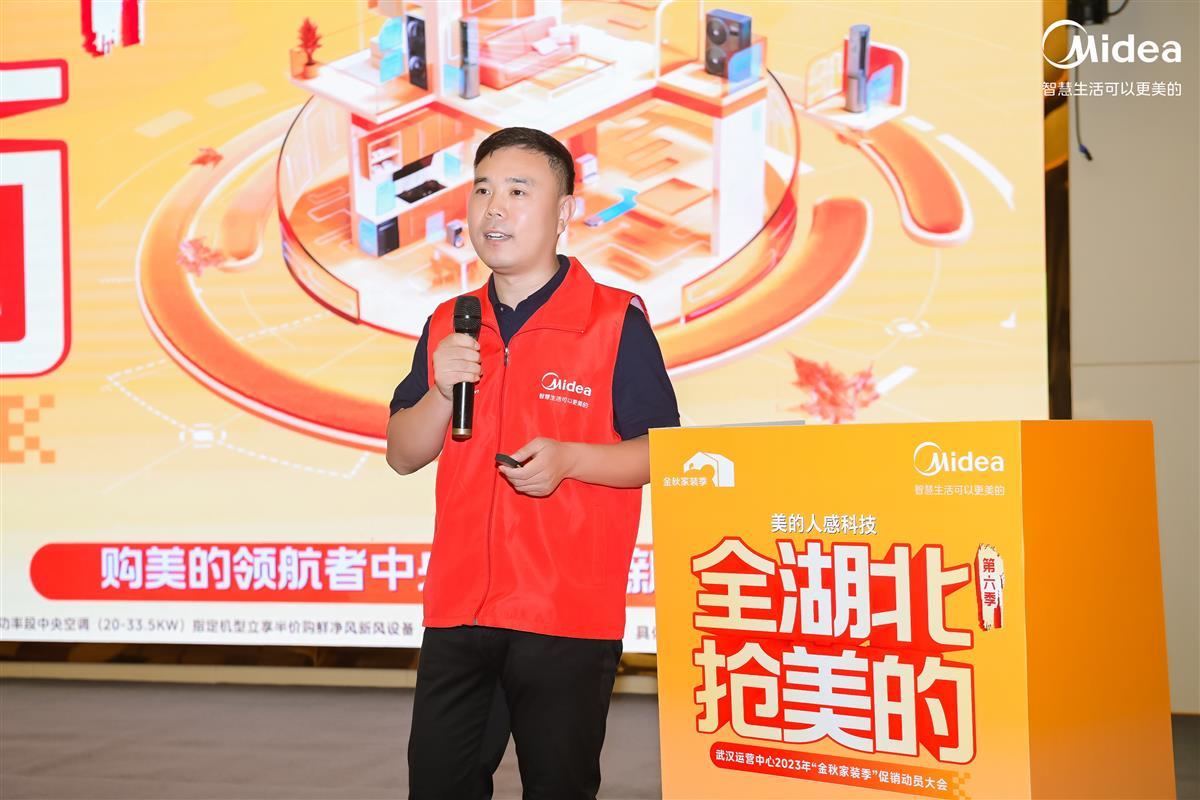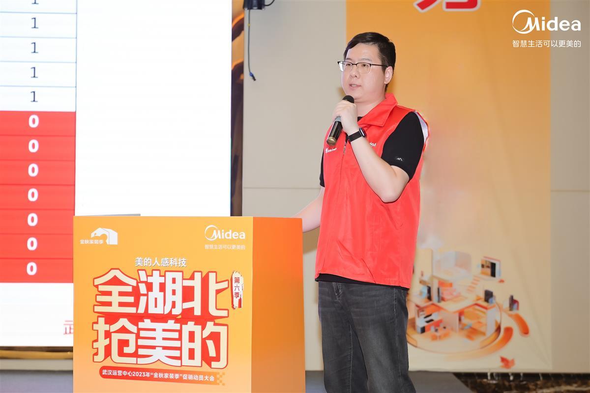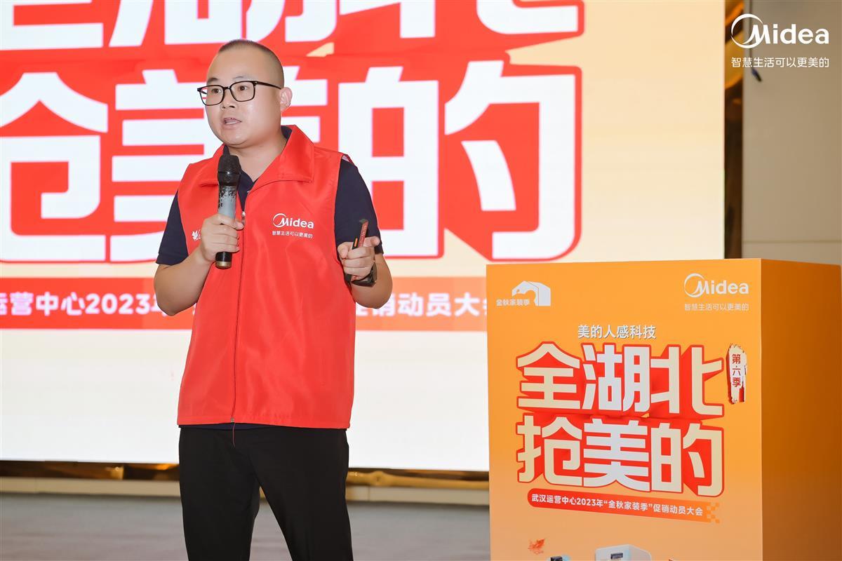 在活动现场,美的集团武汉运营中心用户与市场部部长杨伟波上台进行“全湖北抢美的”方案讲解。