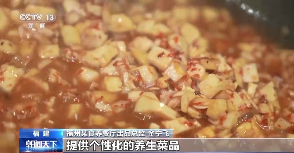 福州某食养餐厅出品总监 金宁飞:每一个节气,餐厅都会根据当季的食材和气候的特点,推出符合养生理念的菜品。同时餐厅还会根据不同的人群体质提供个性化的养生菜品。